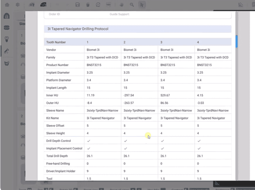 The drilling protocol now displays up to 4 implants on one page, making it more concise, and easier to navigate.